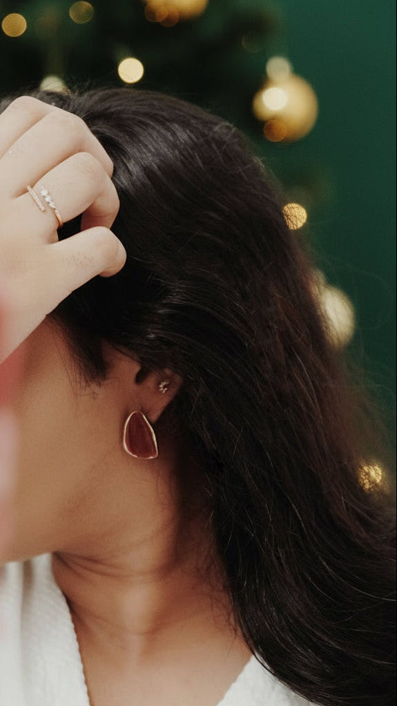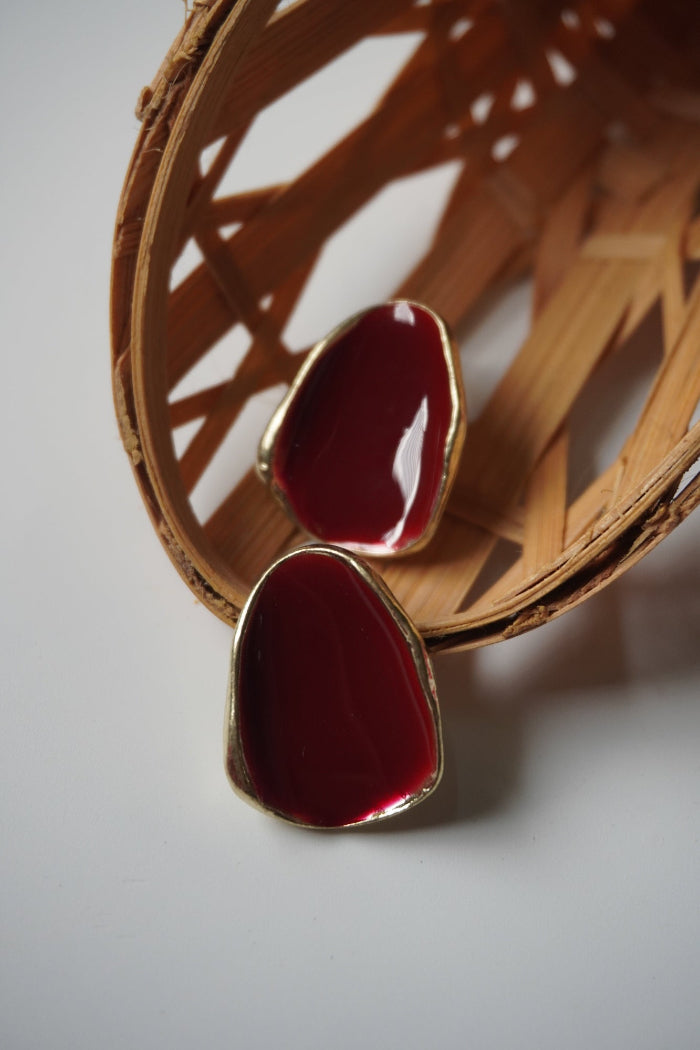 Crimson Melt earrings are a versatile essential for your jewelry collection. Their rich, warm tones pair effortlessly with off-white and gold accents, creating a cohesive, polished look. Whether you're dressing for festive holiday gatherings or making an understated impression at intimate soirées, these statement pieces elevate any occasion with refined elegance and understated sophistication.